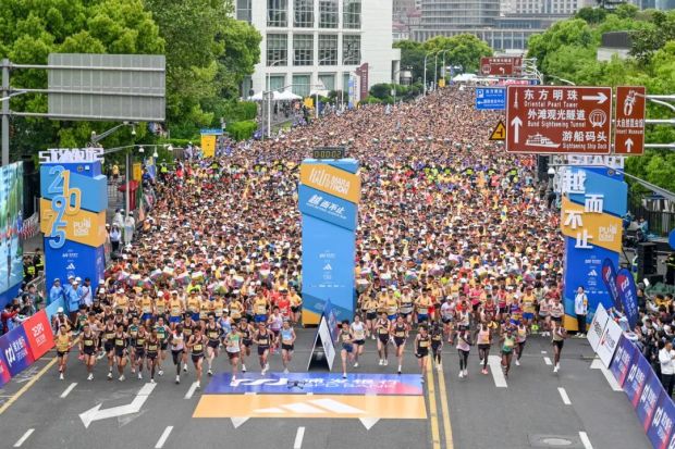 2024年4月21日,2024上海半程馬拉松在東方明珠腳下鳴槍起跑。澎湃新聞記者 朱偉輝 圖