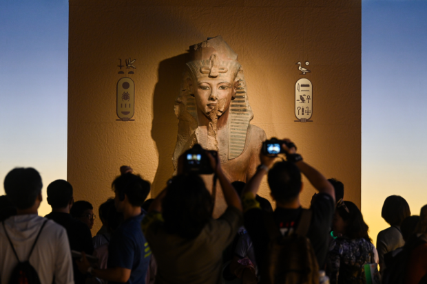 2024年7月19日,上海博物館,觀眾在拍攝圖坦卡蒙雕像。澎湃新聞記者 朱偉輝 圖