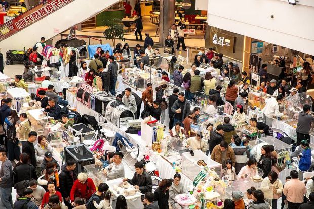 2024年12月15日,上海發放消費券,商場內購物消費的市民人頭攢動。視覺中國 資料圖