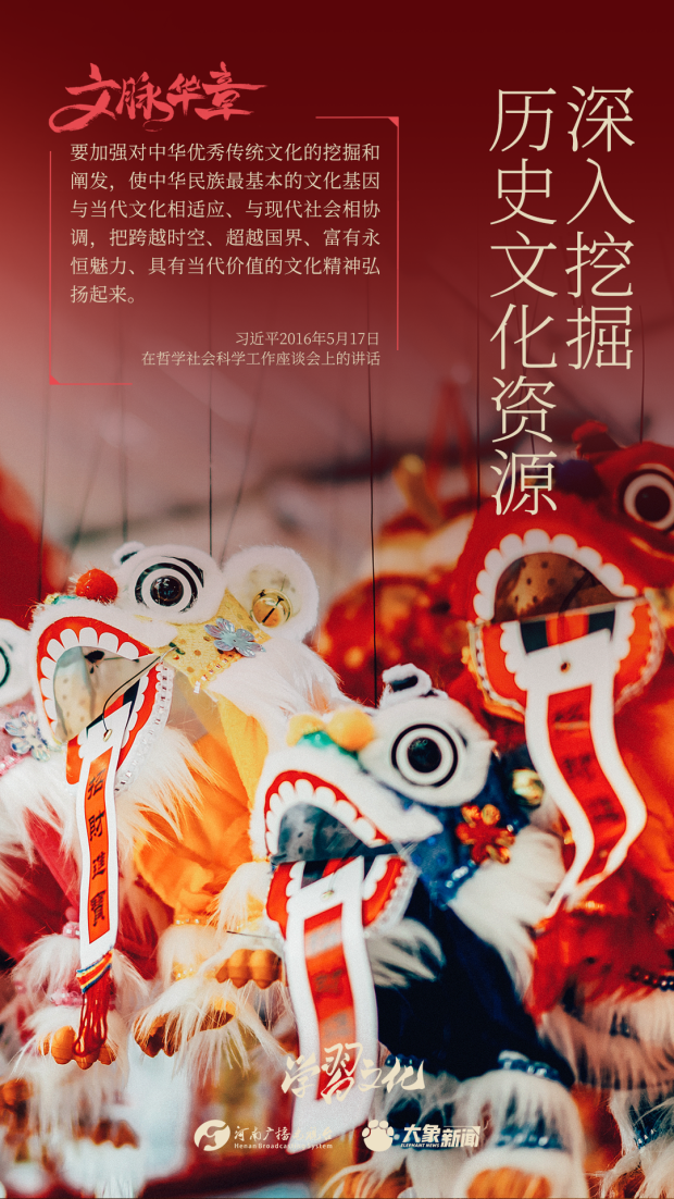 “春節——中國人慶祝傳統新年的社會實踐”被列入聯合國教科文組織人類非物質文化遺產代表作名錄,彰顯了中華優秀傳統文化的深厚底藴,也是我國曆史文化資源保護的又一成果。習近平總書記十分重視歷史文化資源的挖掘、利用,多次發表重要講話,滿載對傳承和發展中華優秀傳統文化的期許。我們一起學習。