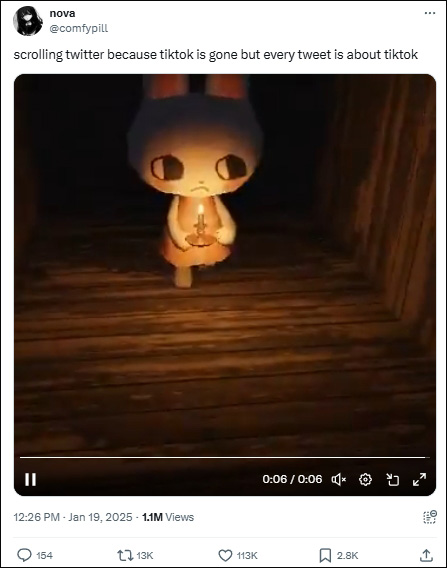 X平台上的TikTok“濃度”居高不下。不少人通過發佈動態圖表達失落之情。