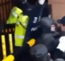 尹錫悦支持者搶奪執勤警察的盾牌,與警察發生衝突。 視頻截圖
