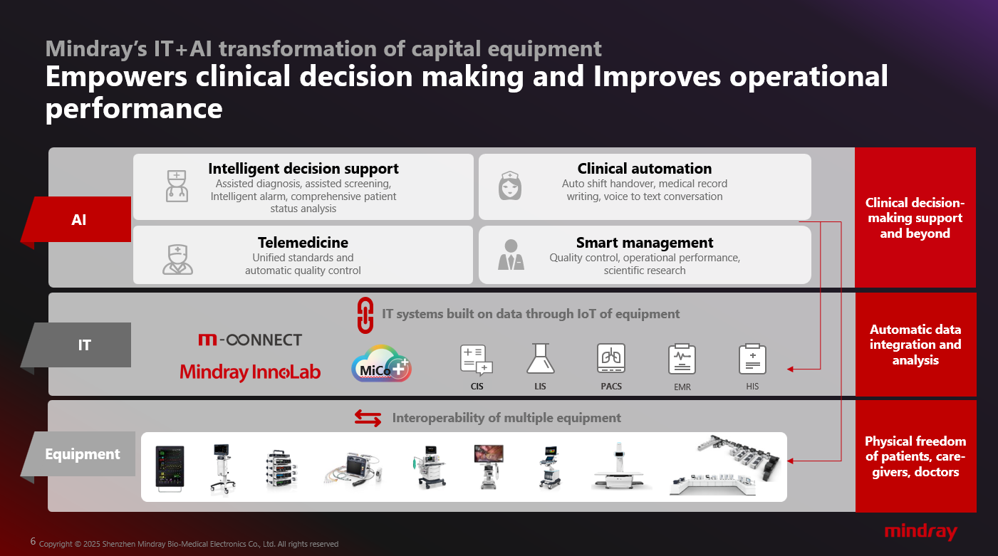 目前,邁瑞醫療基於“設備+耗材+IT+AI”解決方案構建的醫療生態系統,已在全球激起漣漪。