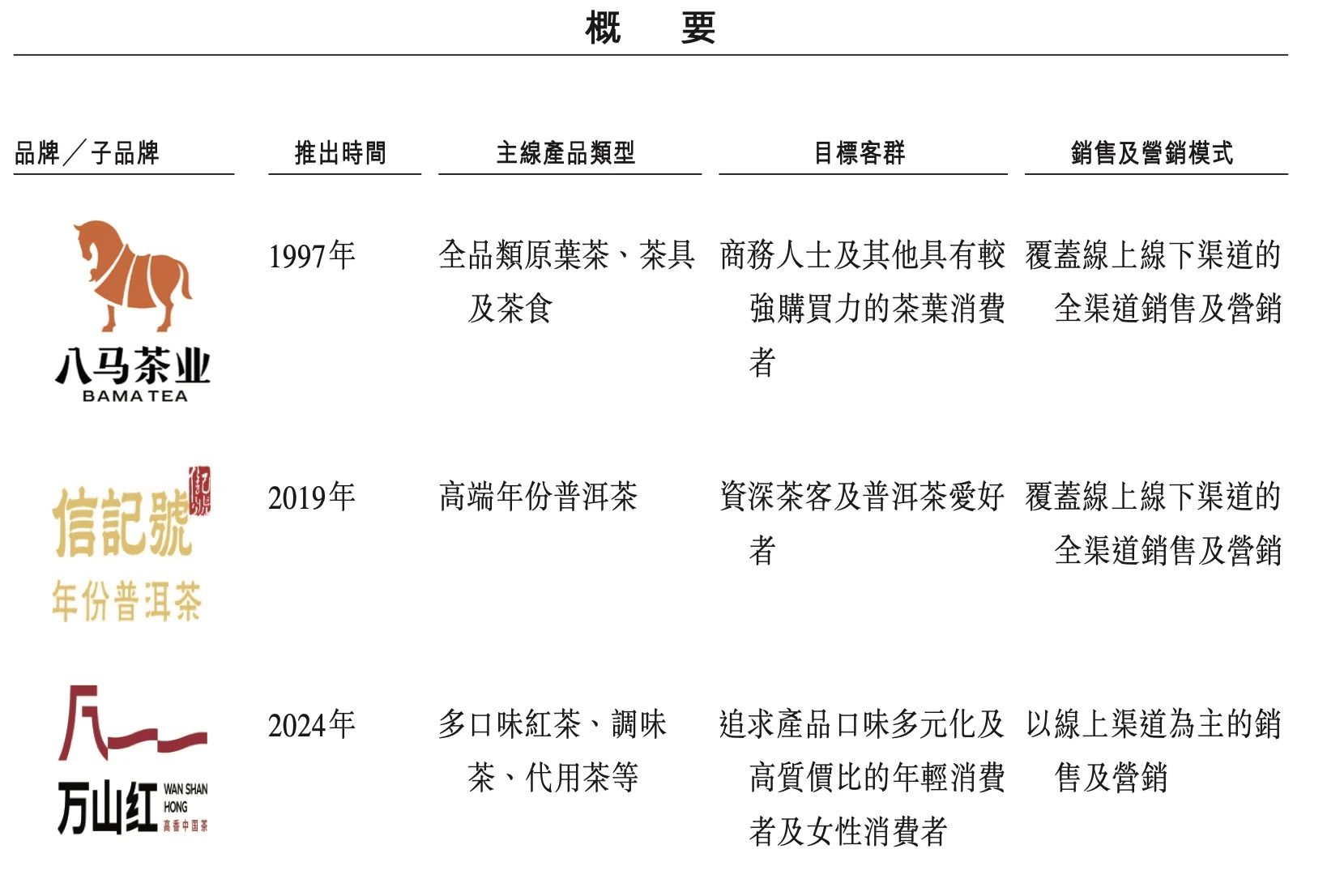 公司擁有核心品牌八馬,而信記號子品牌專注提供高端年份普洱茶,萬山紅子品牌則專注於提供迎合追求口味多元化及高質價比的年輕消費者及女性消費者的產品。