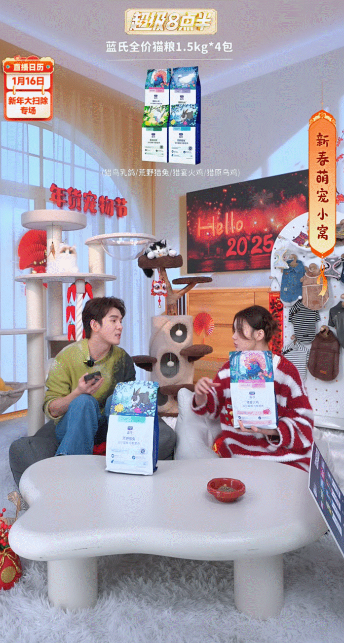 給寵物買“壓歲糧”“新年裝”也在今年成為養寵一族給“毛孩子”過年的熱門方式。今年年貨節,寵物類產品在李佳琦直播間共售出超41萬件,其中,有近30萬件是“家長們”給寵物的“年夜飯”“壓歲糧”。