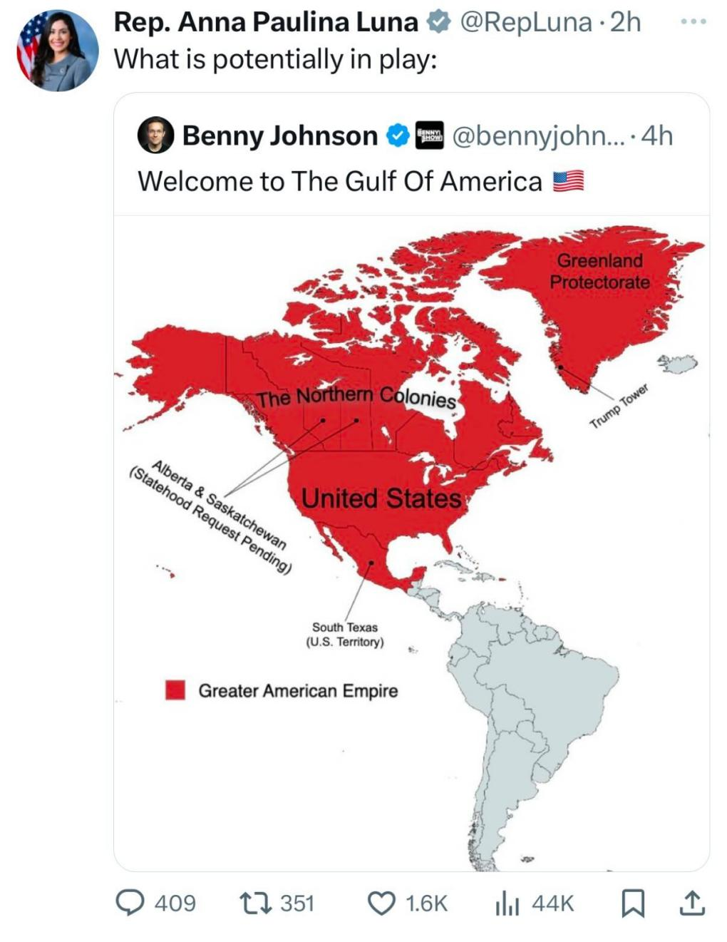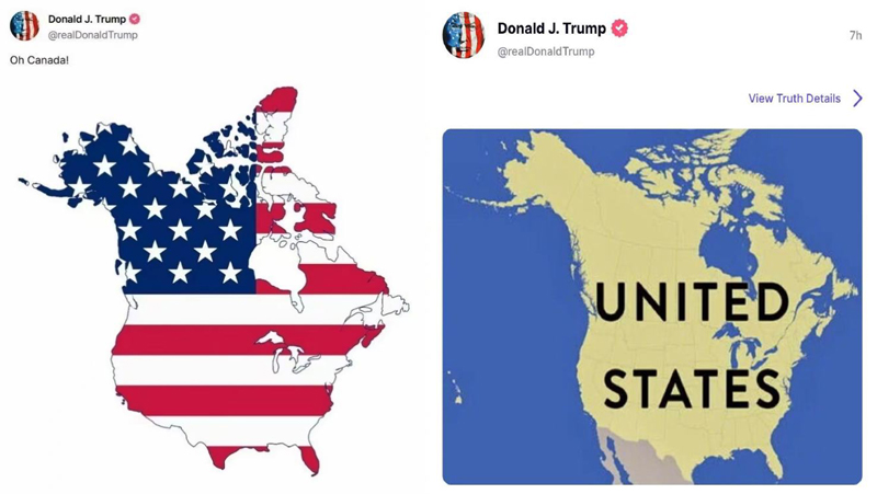 早在就職前,特朗普就已經沉迷於“推特開疆”了,不管是加拿大、格陵蘭還是巴拿馬,他都想劃到美國領土裏。
