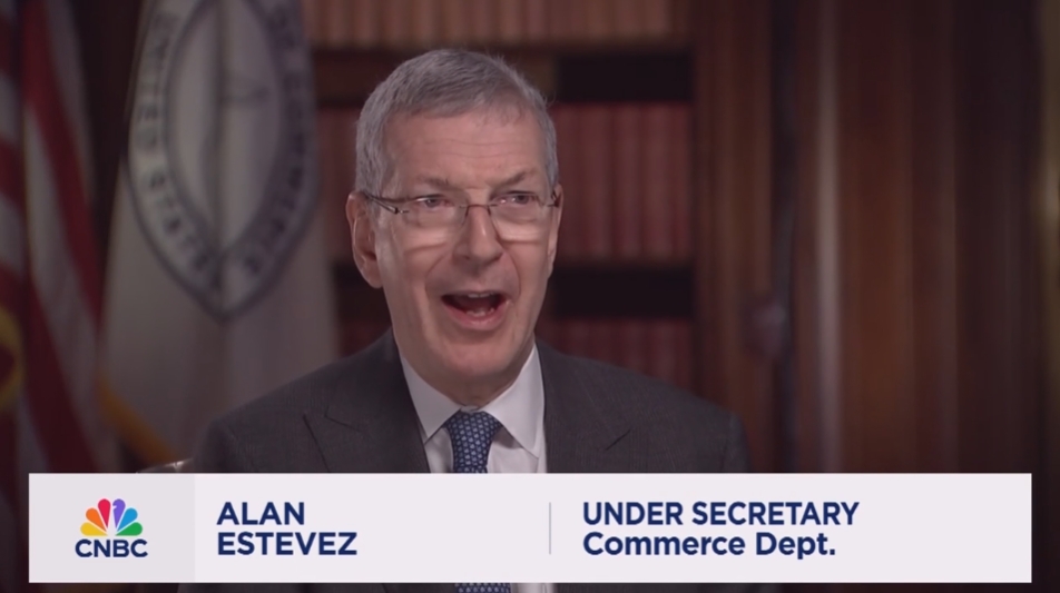 當地時間1月17日,時任美商務部副部長艾倫·埃斯特維茲接受採訪。CNBC視頻截圖