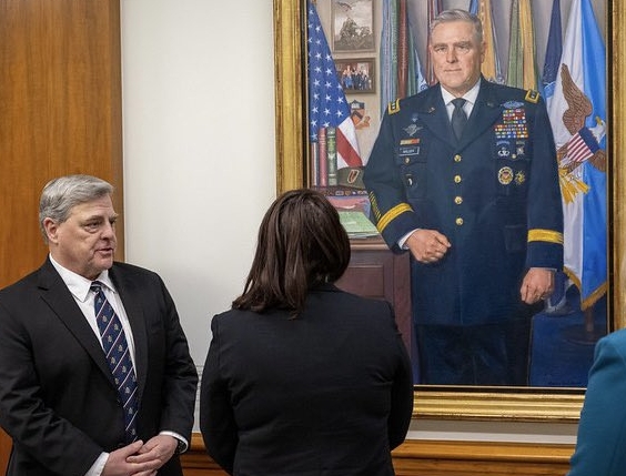 值得一提的是,米利的肖像剛剛在當地時間10日被掛上去。當天,五角大樓在大樓走廊舉辦了肖像揭幕儀式,米利和時任國防部長奧斯汀出席儀式。