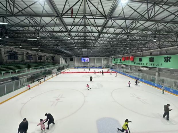 2025年1月,市民在大連冰熊冰上運動中心冰場運動。該冰場應用了大連冰山集團研製的製冰製冷控制系統。(孫濤 攝)