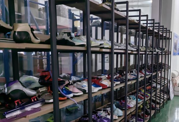 2025年1月2日,長春百凝盾體育用品器材有限公司工廠裏擺放的冰鞋樣品。新華社記者王帆 攝