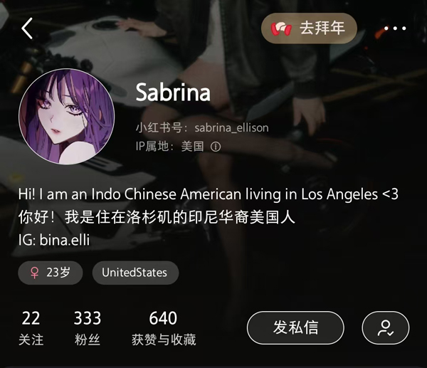 薩布麗娜在小紅書上的自我介紹