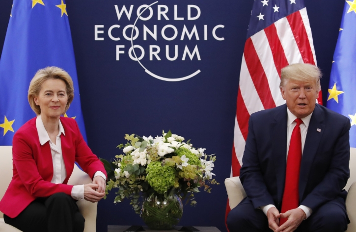2020年達沃斯年會上,時任美國總統特朗普與馮德萊恩會面。 歐盟網站