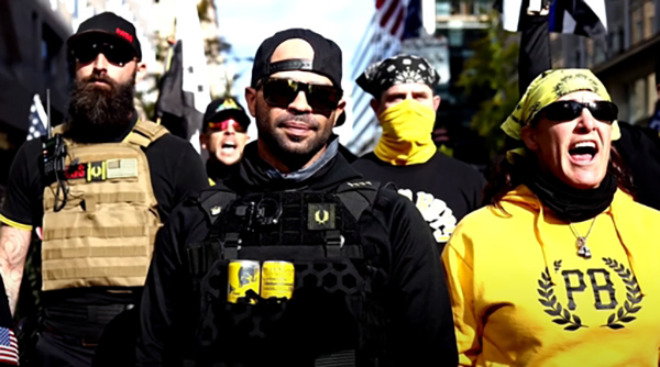 美國極右翼組織“驕傲男孩”的前領導人恩裏克·塔里奧(中) 視頻截圖