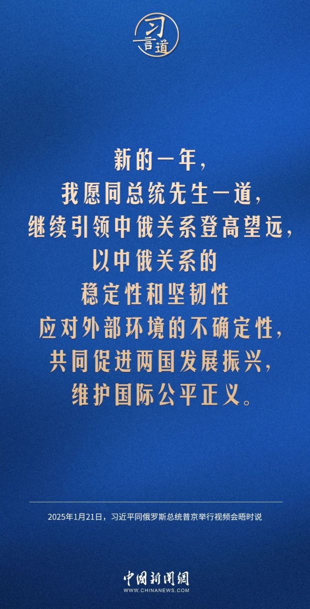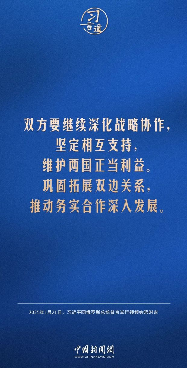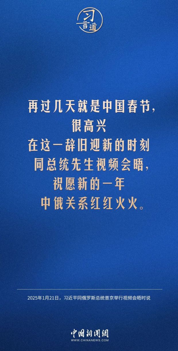 1月21日,國家主席習近平在北京人民大會堂同俄羅斯總統普京舉行視頻會晤。習近平指出——