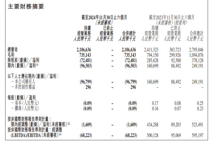 與此同時,東方甄選同日披露的中期業績(截至2024年11月30日止6個月)顯示,報告期內,東方甄選持續經營業務淨虧損9650.3萬元人民幣,而去年同期為淨盈利1606.99萬元人民幣。東方甄選稱,由於期內出售了“與輝同行”,若剔除出售所帶來的財務影響,持續經營業務則為淨盈利3270萬元人民幣。