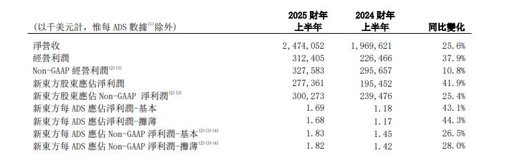 另一方面,據新東方財報,2025財年上半年(截至2024年11月30日止6個月),新東方淨營收約24.74億美元,同比增長25.6%。期內淨利潤2.77億美元,同比增長41.9%,經營利潤達3.12億美元,同比增長37.9%,每股ADS基本淨利潤1.69美元。在Non-GAAP下,上半年淨利潤按年增長25.4%至3億美元,經營利潤增長10.8%至3.28億美元。