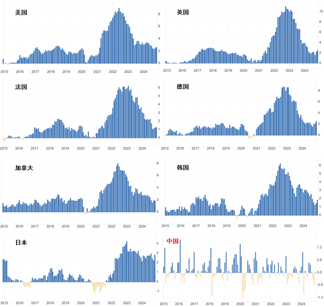 這種趨同的走勢也是西方國家自身經濟日益陷入對美依附的縮影。在美國政策的影響下,它們或是對全世界最大的工業國家發動貿易戰、構築關税壁壘,主動推高本國從生產製造到消費全鏈條的物價水平;或是策動多方向的地緣衝突,造成能源危機;或是量化寬鬆,連續貨幣超發,且熱錢投向脱實向虛,形成大量泡沫……在多方因素影響下,這些國家的通貨膨脹問題,最終在新冠大流行後被引爆。