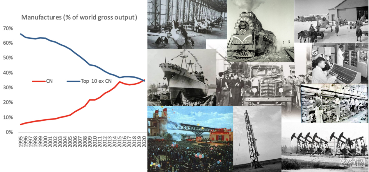 回看上文所提到的從技術、生產直到輸出的全球格局變化,作為中國人,我們也都很清楚促成這個進程的主力是誰,這個70年前才開始大規模工業化的國家,如今的製造業已經突破了全球份額的1/3,並且超過了其他9大工業國製造業產出總和。並且還在向着更大、更快、更新繼續發展,繼續勇立在百年未有之大變局的時代潮頭。