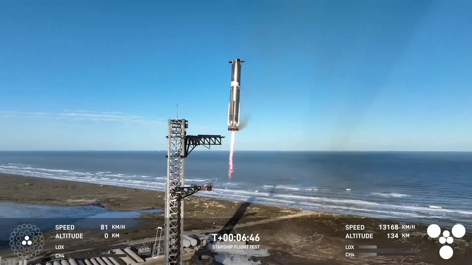 圖3 星艦第七次飛行筷子夾箭回收第一級SpaceX