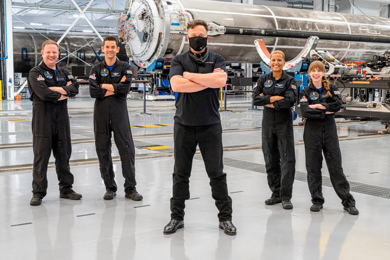 圖4 馬斯克(中)和艾薩克曼(左二)SpaceX