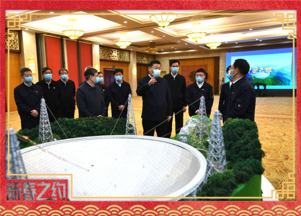 2021年春節前夕,習近平總書記在貴州考察時親切會見了“中國天眼”項目負責人和科研骨幹。對奮戰在科技創新一線的廣大科研工作者們,總書記寄予厚望,他指出:“希望大家以南仁東先生為榜樣,弘揚科學家精神,勇攀世界科技高峯,加快從跟跑向並跑領跑轉變,在一些領域要保持領跑優勢,為建設科技強國、實現科技自立自強作出更大貢獻。”