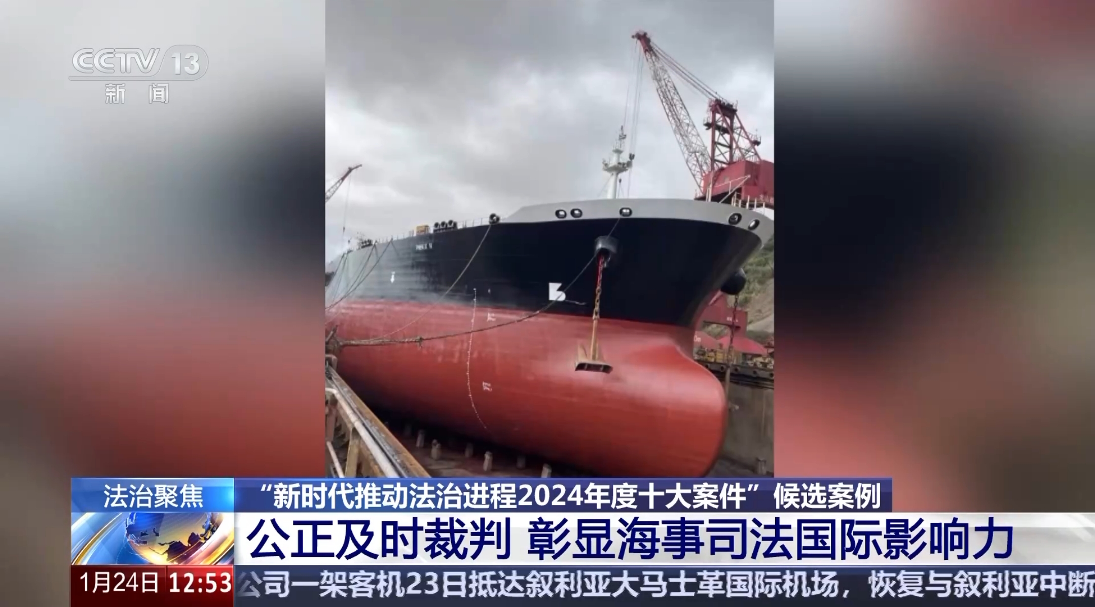 **寧波海事法院副院長 李鋒:**我們收到扣押申請以後,及時跟船舶停靠地的船廠,還有我們國家的邊檢、海事部門及時聯繫,在次日作出了裁定和扣押令,及時扣押了這條船舶。