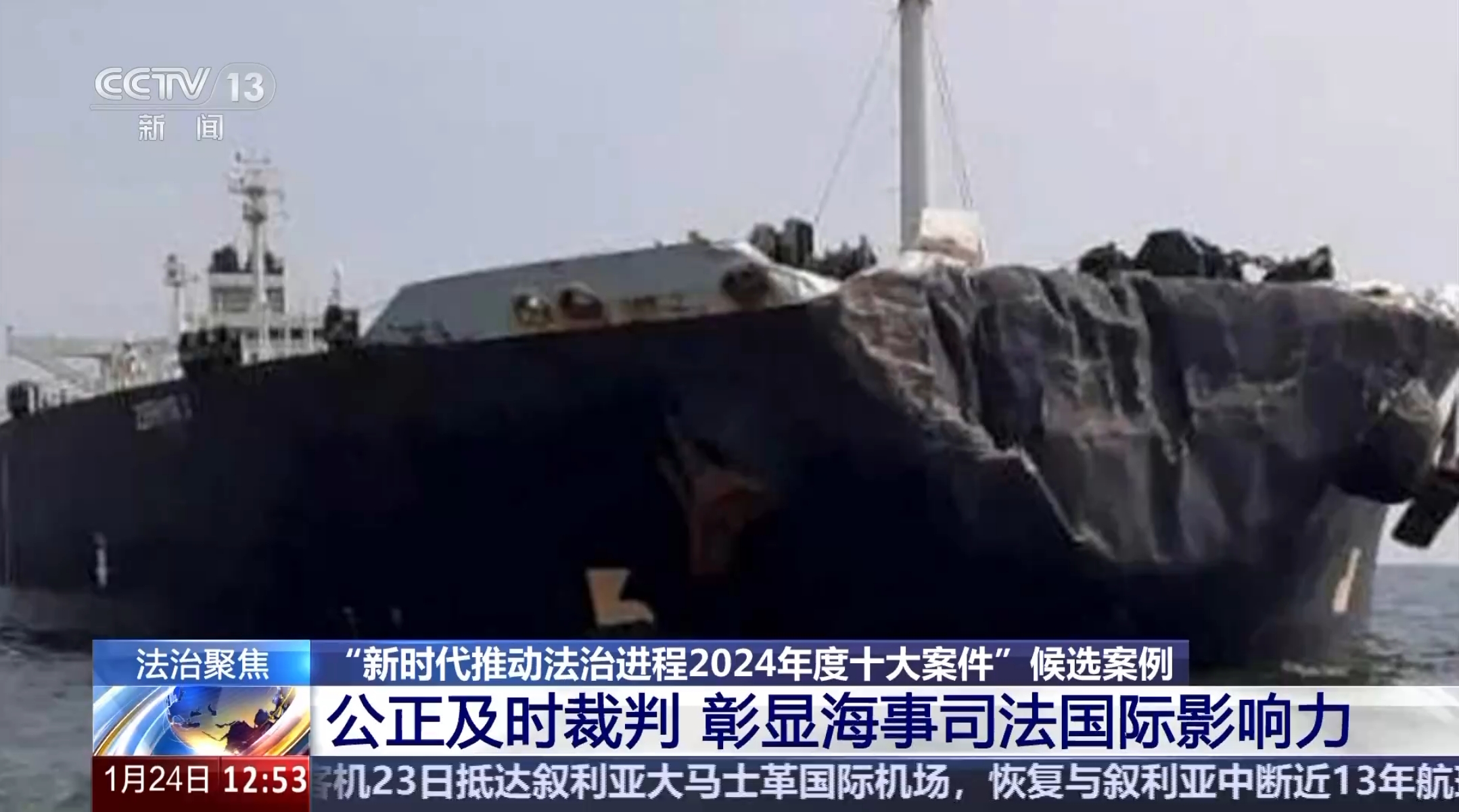 **寧波海事法院副院長 李鋒:**五個國家的法院對本案都有司法管轄權,原告選擇到中國來扣押船舶,同時雙方在審理的過程當中又選擇適用中國法律,我們依照中國法律以及國際避碰規則,對這個案子進行了公正及時的裁判,彰顯了我們國家海事司法的國際影響力和公信力。
