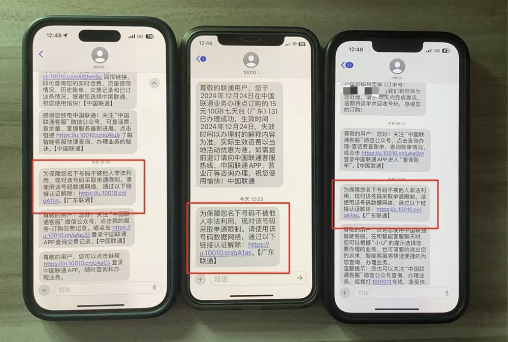 在廣東省電信用户申訴綜合處理中心處理過程中,2025年1月2日,韓先生意外發現自己的手機號碼被限制呼出,自己名下的另外兩個家人使用的中國聯通號碼也被限制呼出,“卡上還有400多塊錢的話費,都不能使用了,只能接聽”。
