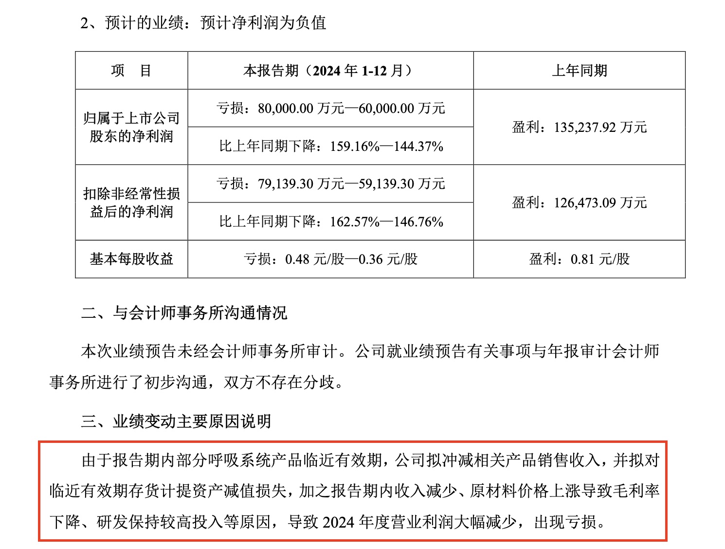 1月21日晚間,該公司發佈了2024年度業績預告,預計全年歸母淨利潤為負,虧損額預計在6億至8億元之間。這一業績預告揭示了以嶺藥業在過去一年中面臨的多重困境。