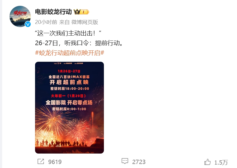 但是目前為止,《蛟龍行動》的熱度並不高,甚至在春節檔正式開始前突然放出了“提檔”的消息——放手一搏希望通過提前上映獲得一些口碑積累。