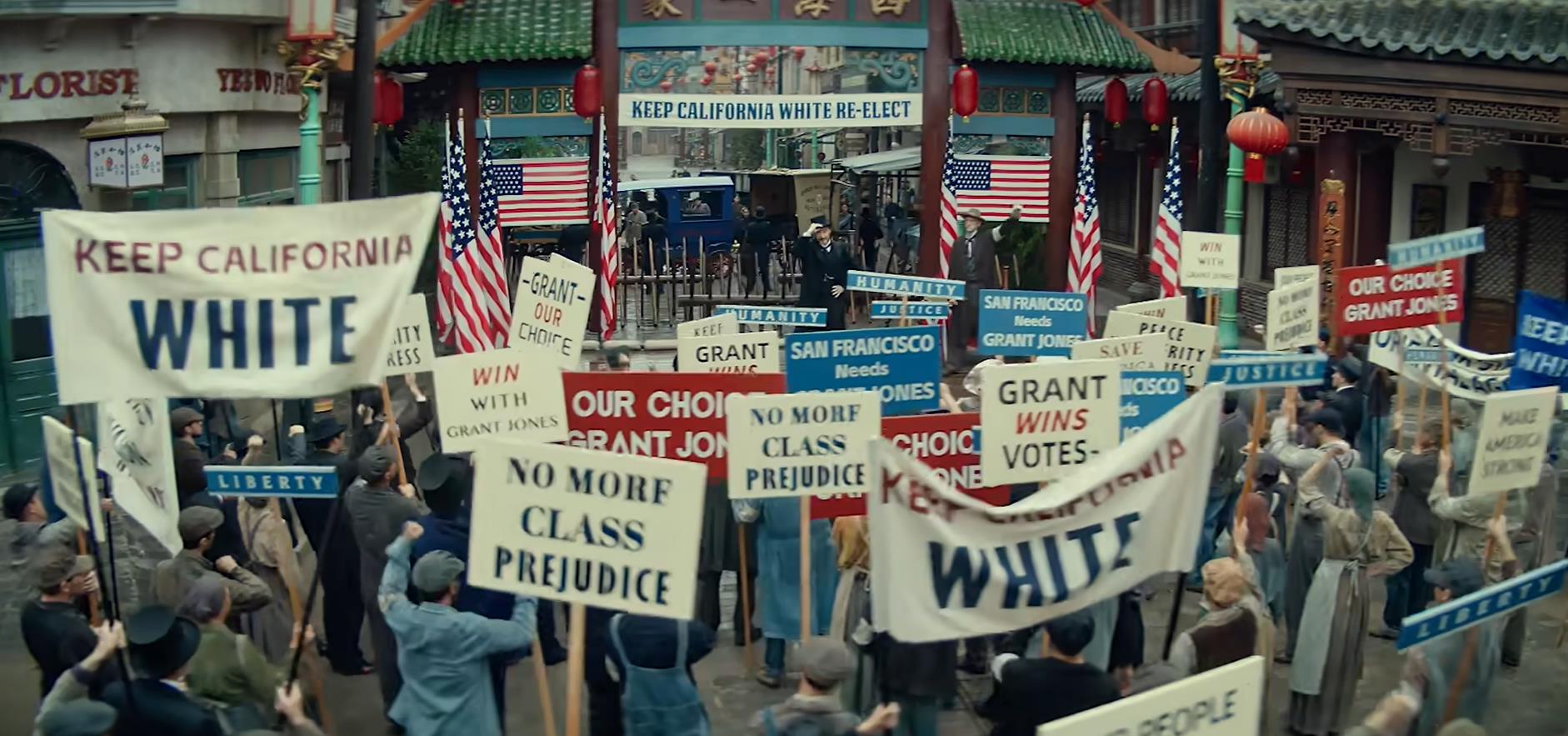電影中出現了大量華工形象——舊金山這個名字就源於在淘金潮中做苦力的華工,以及為了美國修鐵路而死亡無數的華工,當他們為美國崛起做出關鍵貢獻後,被“卸磨殺驢”驅逐和迫害。