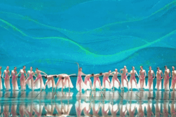 現代芭蕾《伊人》中,舞者腳尖輕劃,舞台變幻成一池春水,伊人真的“宛在水中央”。