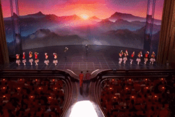 舞者們模仿起大象鼻子,力量感+柔韌性兼備,細膩勾勒出一幅象羣悠然自得的生活畫卷,鋪陳出“太平有象、喜樂昇平”的美好圖景。