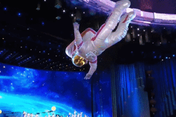 春晚演播廳出現超大月亮,孩子們和“航天員”輕輕觸碰,一起遨遊太空,暢想未來。