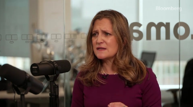 加拿大前副總理兼財政部長克里斯蒂婭·弗裏蘭。彭博社視頻截圖