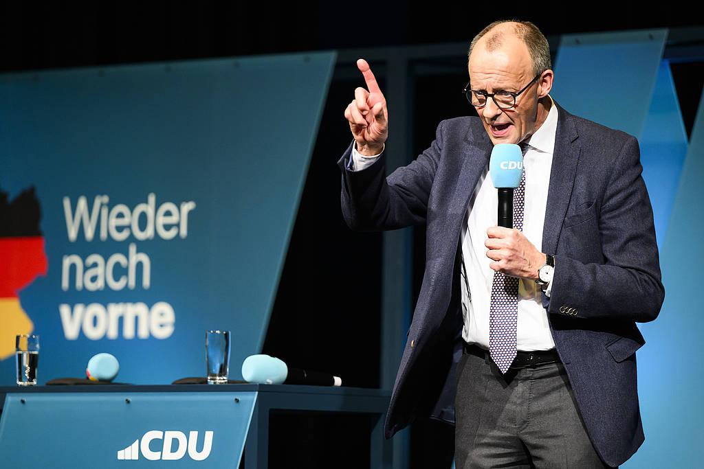 當地時間2025年1月25日,德國黑森州諾伊霍夫,默茨出席競選活動 視覺中國