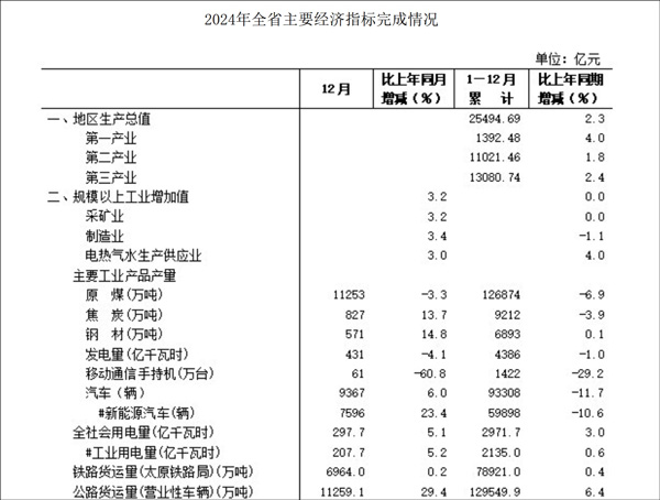 山西省統計局報告指出,過去一年,面對結構性和週期性矛盾疊加、長期性和短期性問題交織的複雜嚴峻形勢,全省經濟承壓前行。經濟運行面臨有效需求不足、部分企業生產經營困難等挑戰,經濟持續回升向好基礎還不穩固。