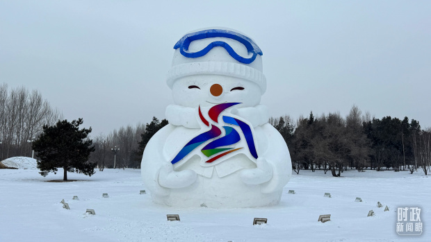 △裝飾有亞冬會會徽元素的雪人。(總枱央視記者蔣碩拍攝)