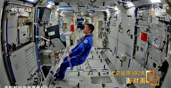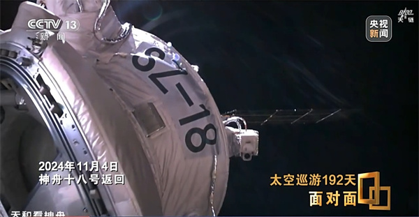 李廣蘇:告別儀式結束的時候,我是第一個離開空間站去神舟十八號飛船的,當時整個人從飄着,離開核心艙,到了節點艙以後,我往兩邊一看,再看一看兩個實驗艙,再回頭看一看自己工作生活了192天的空間站,心裏邊會有一種莫名的酸楚,有一種想哭的衝動,忍着淚水沒敢看第二眼。