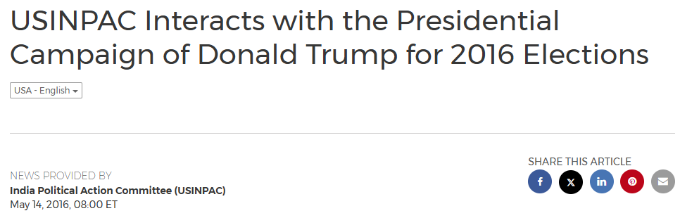 2016年的報道:“USINPAC與唐納德·特朗普2016年總統競選團隊互動”