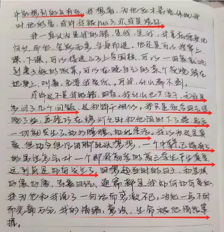 據奔流新聞此前報道,實名舉報者農女士表示,輕生的女生是她的表妹。今年1月17日,表妹在家中燒炭,導致一氧化碳中毒死亡。家人在整理衣物時,發現了表妹的日記、聊天記錄等證據,這才知道上高中時遭班主任老師性侵。