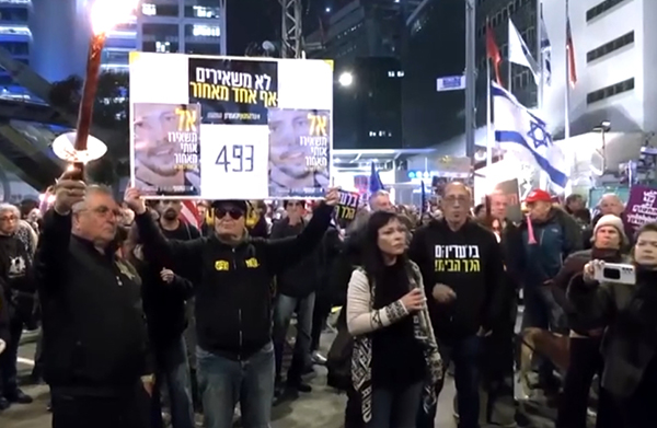當地時間10日,約2000名抗議者在以色列特拉維夫聚集,呼籲以色列政府不要放棄停火協議。 視頻截圖