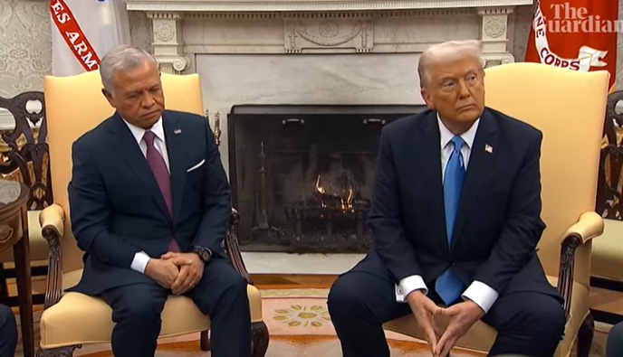 據美國《華爾街日報》、美聯社和現場視頻,特朗普在阿卜杜拉二世面前堅稱,美國有權“佔領”加沙,約旦及其他地區國家將接收居住在加沙的巴勒斯坦人。