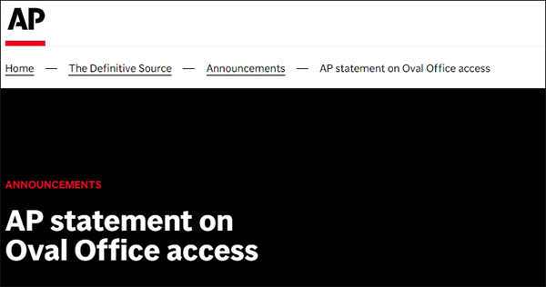 美聯社執行主編朱莉·佩斯(Julie Pace)當地時間2月11日發佈聲明稱,該通訊社當天被白宮告知,如果不將其編輯標準與美國總統特朗普將“墨西哥灣”更名為“美國灣”的行政令保持一致,美聯社將被禁止進入橢圓形辦公室。當天下午,美聯社記者被禁止進入橢圓形辦公室參加一項行政令的簽署活動。
