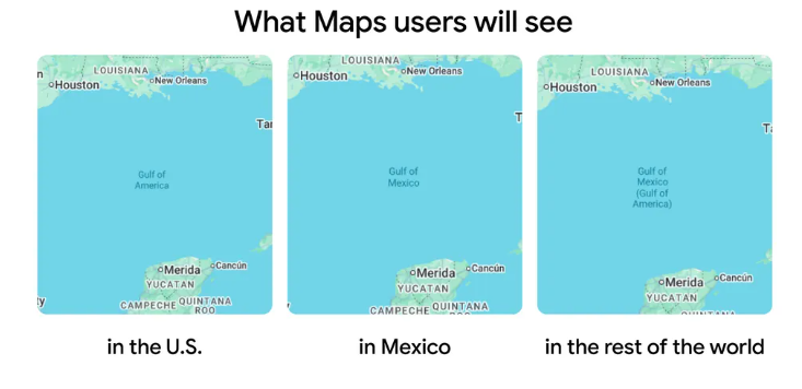 谷歌公司當日對此發佈聲明稱,由於美國地理名稱信息系統(GNIS)已正式將“墨西哥灣”更新為“美國灣”,谷歌地圖按照“長期慣例”,已開始做出更新以反映此變化。在美國使用地圖的用户將看到“美國灣”,在墨西哥的用户將看到“墨西哥灣”,其它地區的用户將看到“墨西哥灣(美洲灣)”。