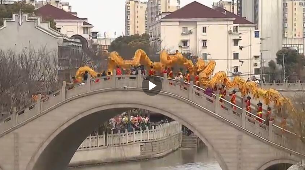 正月十五“走三橋”是上海的傳統民俗。三林古鎮橋多、水豐,巨龍引領的行街隊伍,特別穿越了三座橋。老街上、古橋邊,人頭攢動,熱鬧喜慶。