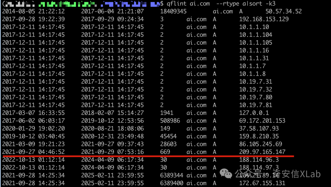 我們利用passiveDNS數據(截止到2025-02-11)對ai.com解析到的Cloudflare地址進行分析發現: