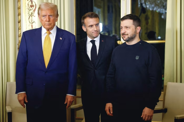 去年12月,馬克龍在愛麗捨宮會見特朗普和澤連斯基 《金融時報》