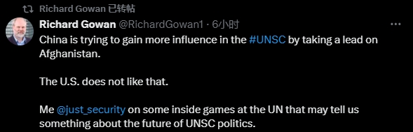 高恩認為,這場“平靜爭端”意義重大,“不僅關係到聯合國如何與塔利班接觸,還關係到中國如何定位自己作為安理會領導大國的地位”。同時,這可能預示着中美在多邊安全問題上的緊張局勢將進一步加劇。