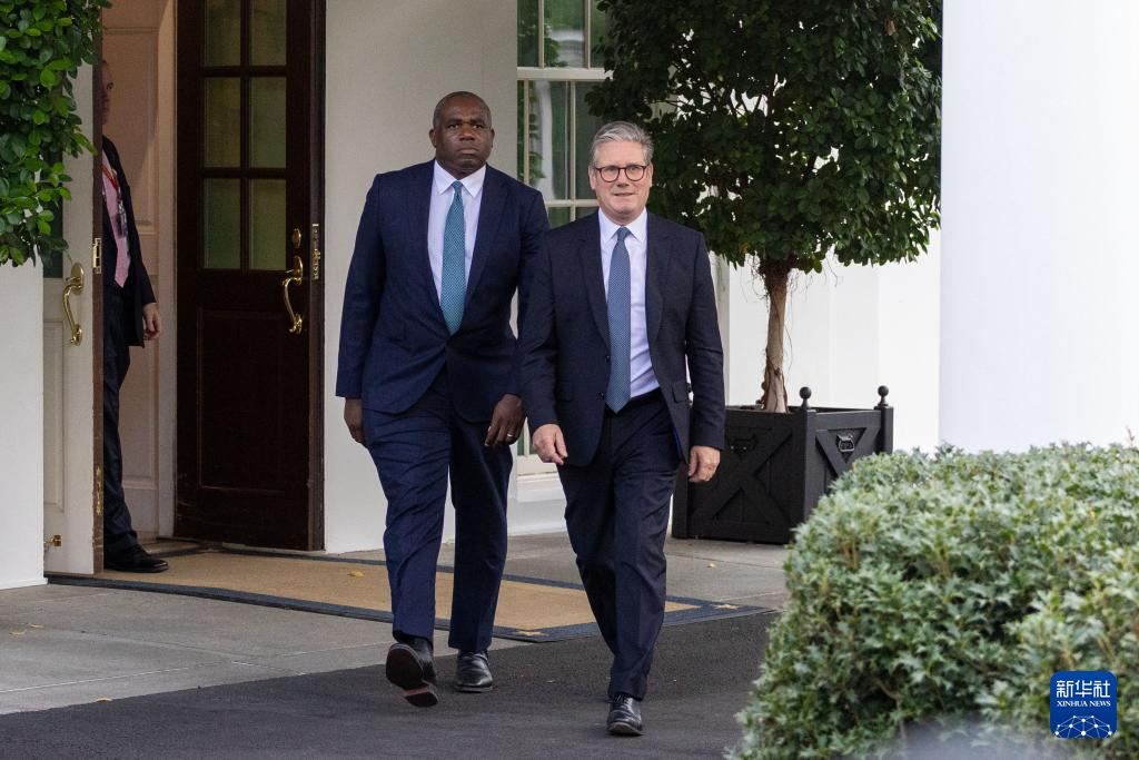 2024年9月13日,在美國首都華盛頓,英國首相斯塔默(右)和外交大臣戴維·拉米在與美國總統拜登會晤後走出白宮。 新華社